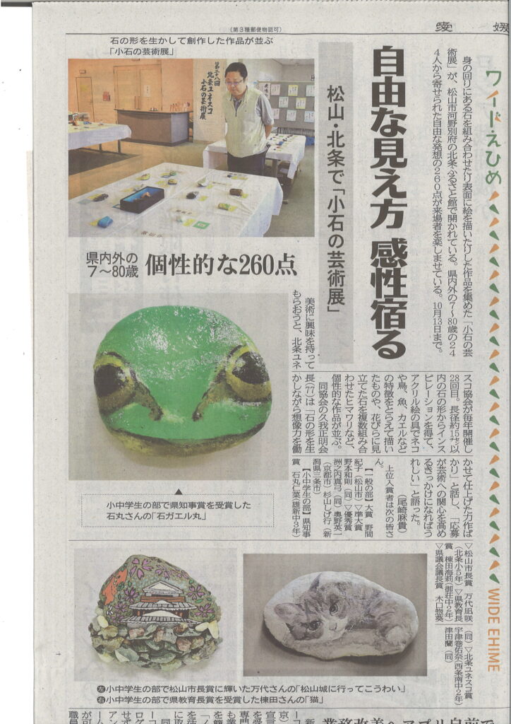 令和7年9月21日愛媛新聞に「小石の芸術展」の記事が掲載されました。