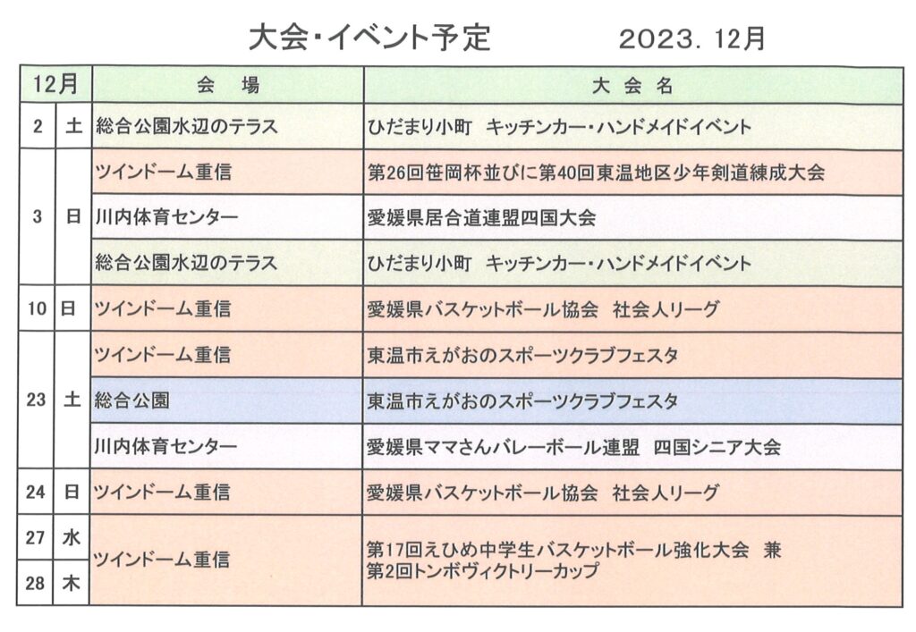 12月の大会・イベント