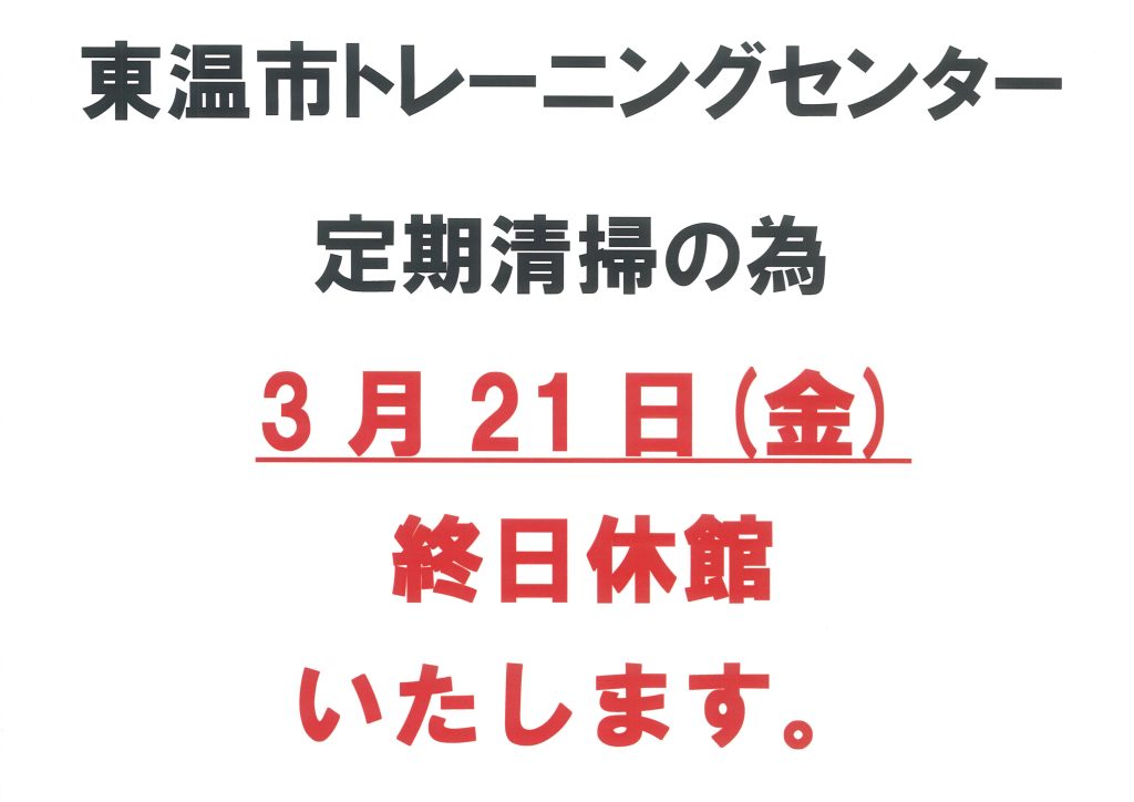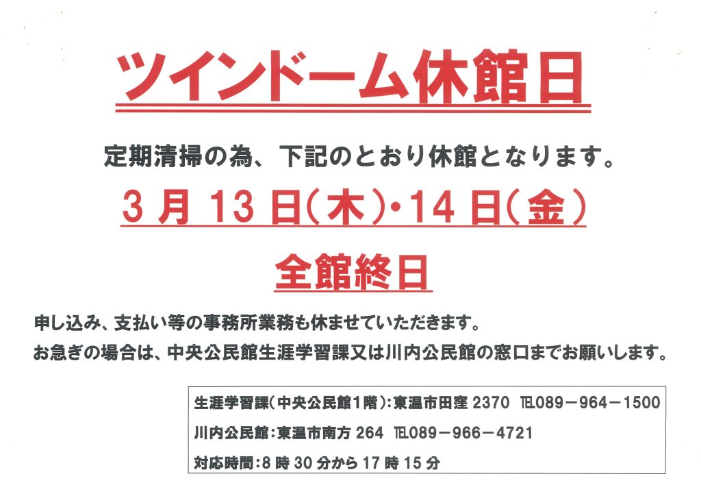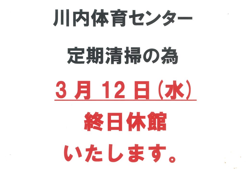 定期清掃休館のお知らせ